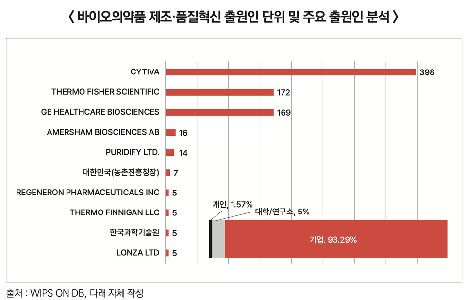보고서를 들여다보며 정부도 국산화를 위해 다양한 사업을 추진 중이지만, 현실은 녹록하지 않음을 알게 됐다. 실제 주요 제조장비 특허의 75%는 싸이티바, 써모피셔, GE헬스케어 등 글로벌 업체가 쥐고 있다. 특히 국내 기업은 특허 장벽에 막혀 주요 장비 시장에 진입하기 어려운 실정이다.
