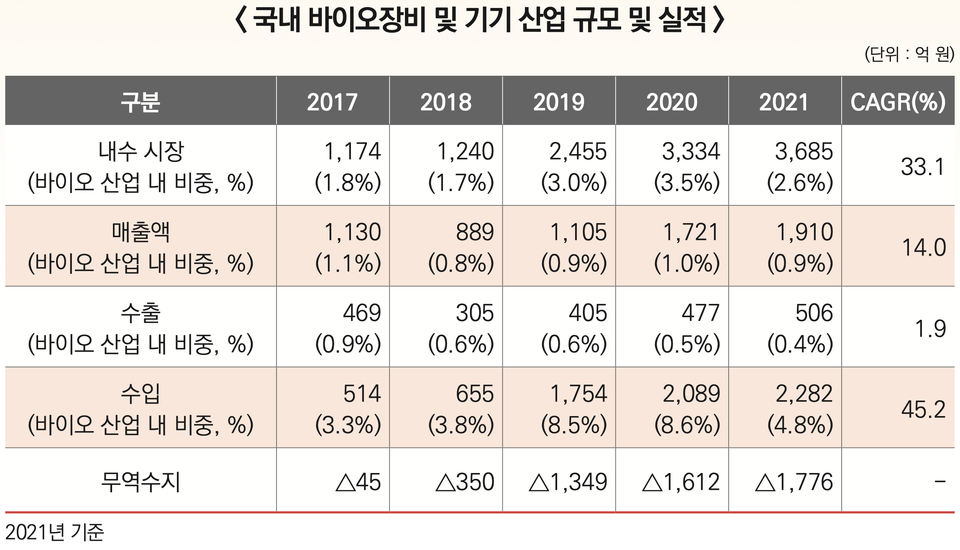 국내 바이오의약품 생산장비 기업 중 다수는 지역사무소 등이 없는 단독 사업체다. 공장이나 연구소, 지점이 없는 영세 구조다. 이로 인해 신제품 개발, 품질 인증, 글로벌 마케팅 등의 역량을 기대하기 어려운 것도 사실이다. CDMO(위탁개발생산) 시장이 급성장하면서 삼성바이오로직스, 셀트리온 등 대형 기업은 물론 기존 제약사까지 생산 능력 확장에 나서고 있지만 이들도 핵심 설비는 해외에서 조달하는 경우가 많다. 국산화에 나서고 싶어도 나설 수 없는 현실이다.