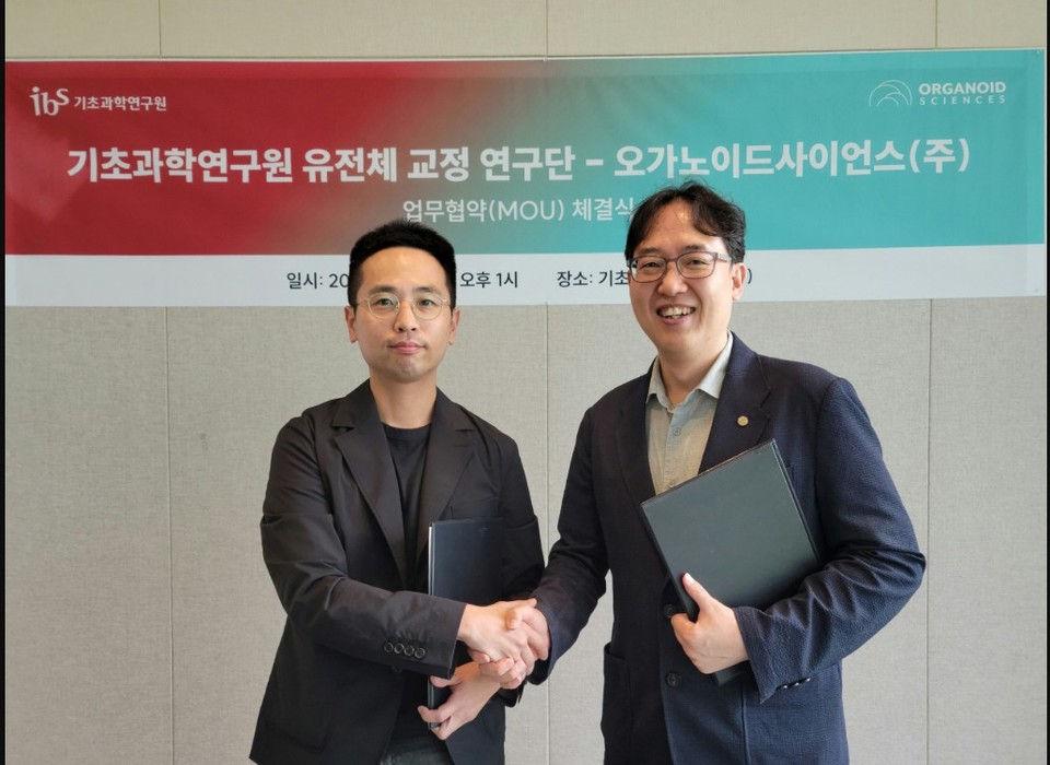 오가노이드사이언스(대표이사 유종만)는 기초과학연구원(IBS) 유전체교정연구단(단장 구본경)과 동물오가노이드 은행 구축 및 활용연구에 착수하는 공동연구협약을 체결했다고 9일 밝혔다.