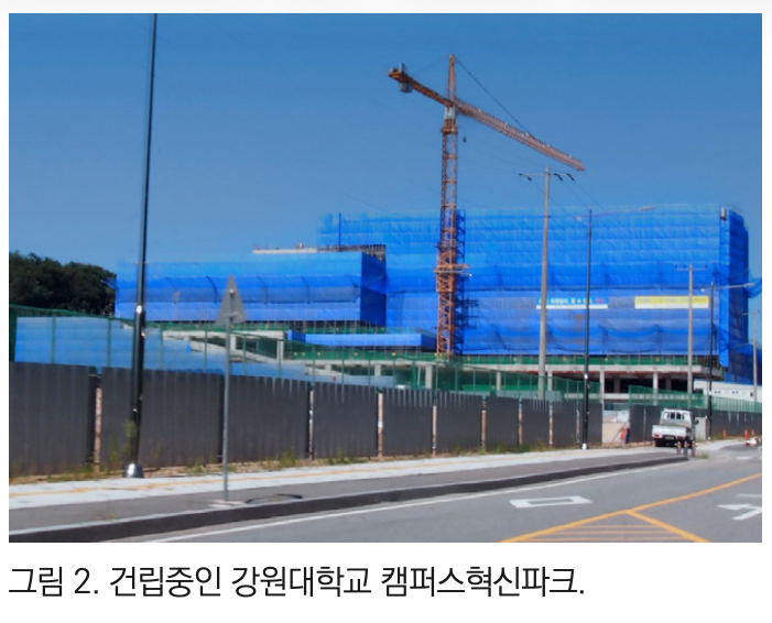 커다란 대학 부지 사이 건물을 요리조리 빠져나와 동문으로 이동하면 옛 농업생명과학대부지 중 연면적 2만1300㎡(옛 6400평)에 달하는 '캠퍼스혁신파크' 건설이 한창이다. 골조가 완성된 상태에서 세부 공사가 한창 진행 중이었다. 바이오 국가첨단전략산업 특화단지의 핵심 거점 중 하나다.
