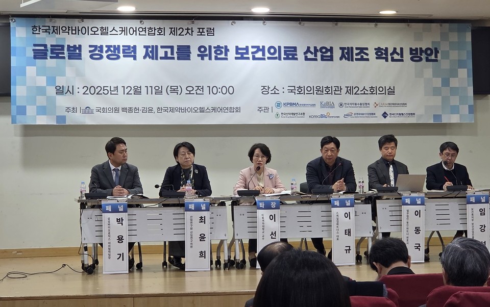 이 같은 지적은 국회 보건복지위원회 소속 국민의힘 백종헌 의원, 더불어민주당 김윤 의원, 한국제약바이오헬스케어연합회가 10일 국회의원회관 제2소회의실에서 공동 주최한 '글로벌 경쟁력 제고를 위한 보건의료 산업 제조혁신 방안 토론회'에서 나왔다.