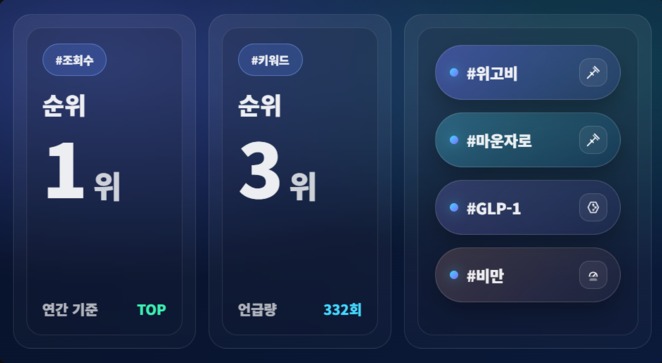 올해 독자들의 클릭을 가장 많이 이끈 키워드는 단연 '비만'이다. <히트뉴스>가 집계한 데이터에 따르면, 조회수 TOP 5 중 세 자리를 위고비와 마운자로 관련 기사가 차지하며 독자들의 뜨거운 관심을 입증했다.
