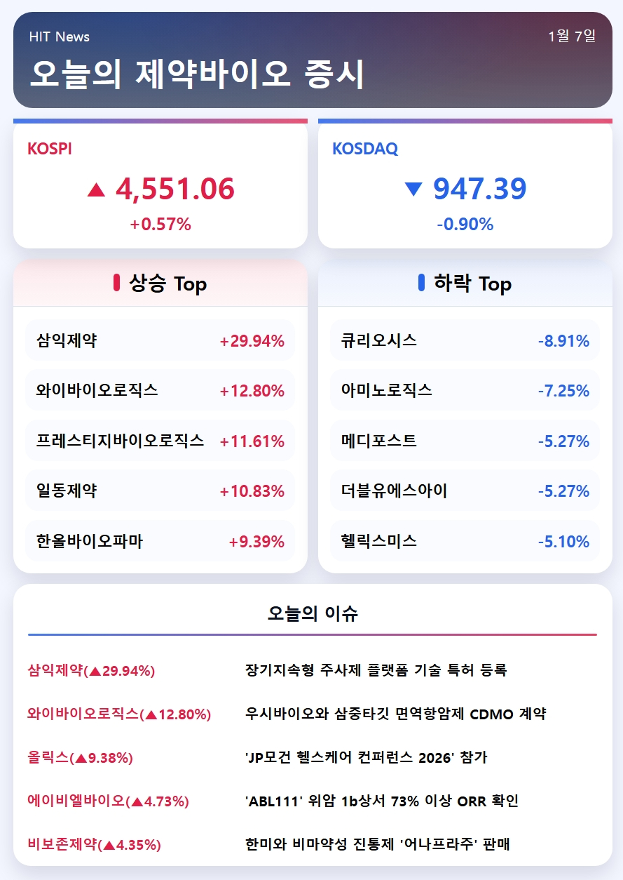 2026년 1월 7일 제약바이오 증시브리핑