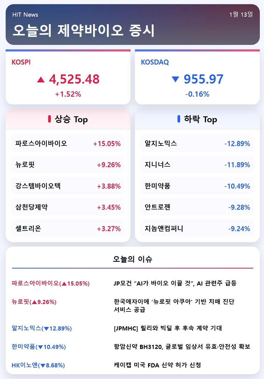 2025년 1월 13일 제약바이오 증시브리핑