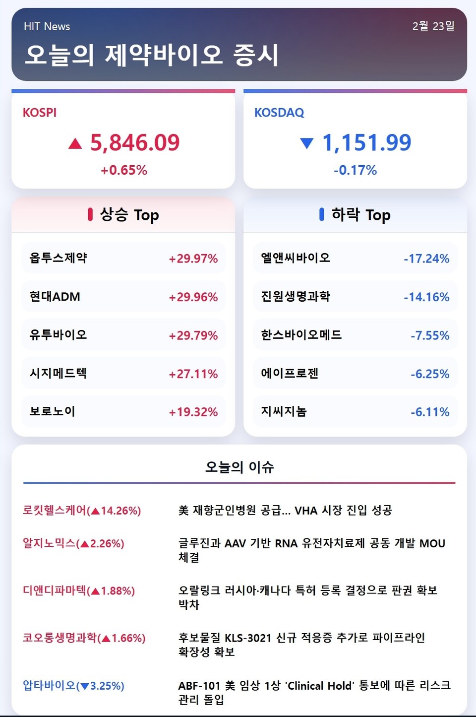 2026년 2월 23일 제약바이오 증시브리핑